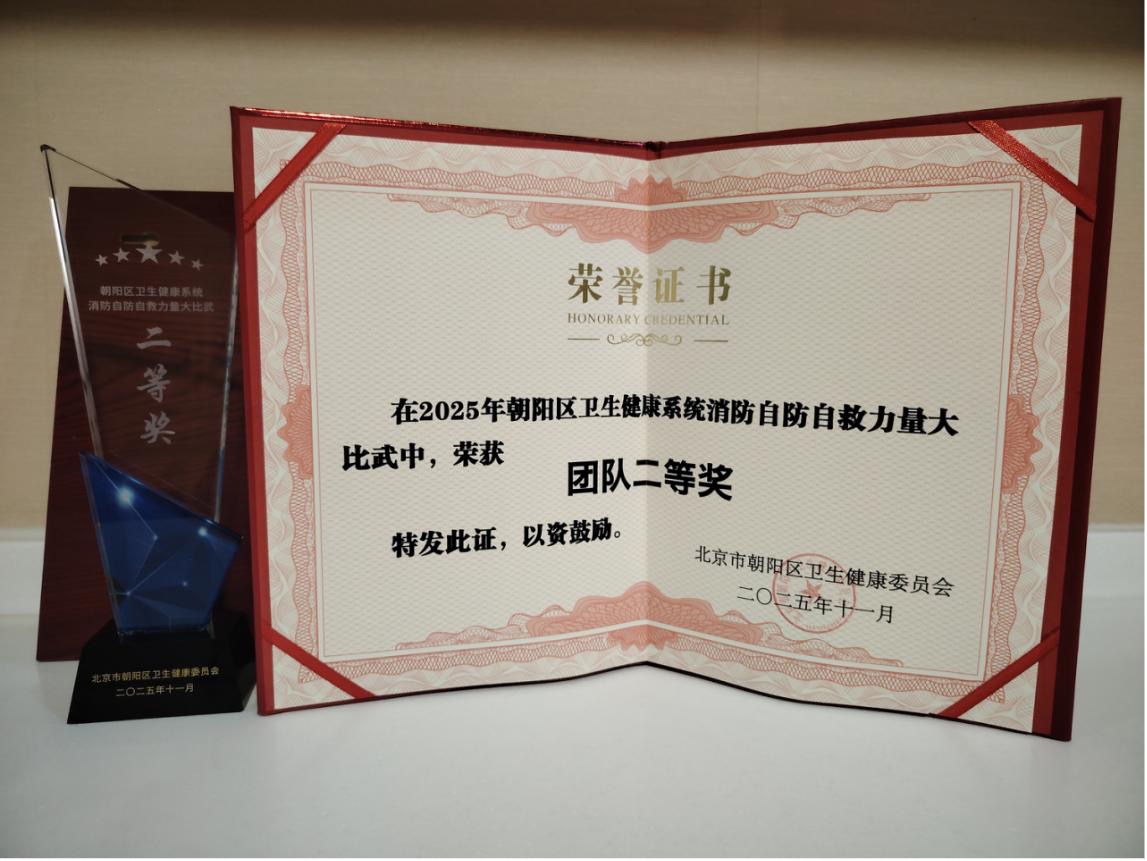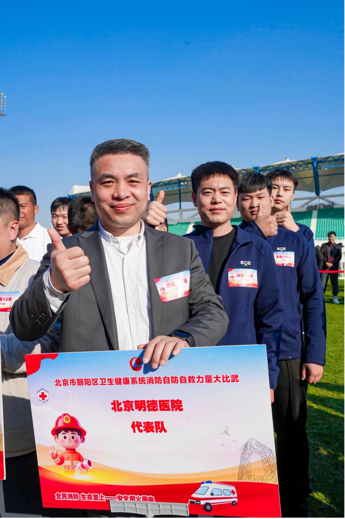 2025年11月11日,北京市朝阳区卫生健康系统消防自防自救力量大比武决赛在朝阳体育中心圆满落幕。北京明德医院从全区119家医疗单位中脱颖而出,获得决赛团体二等奖。